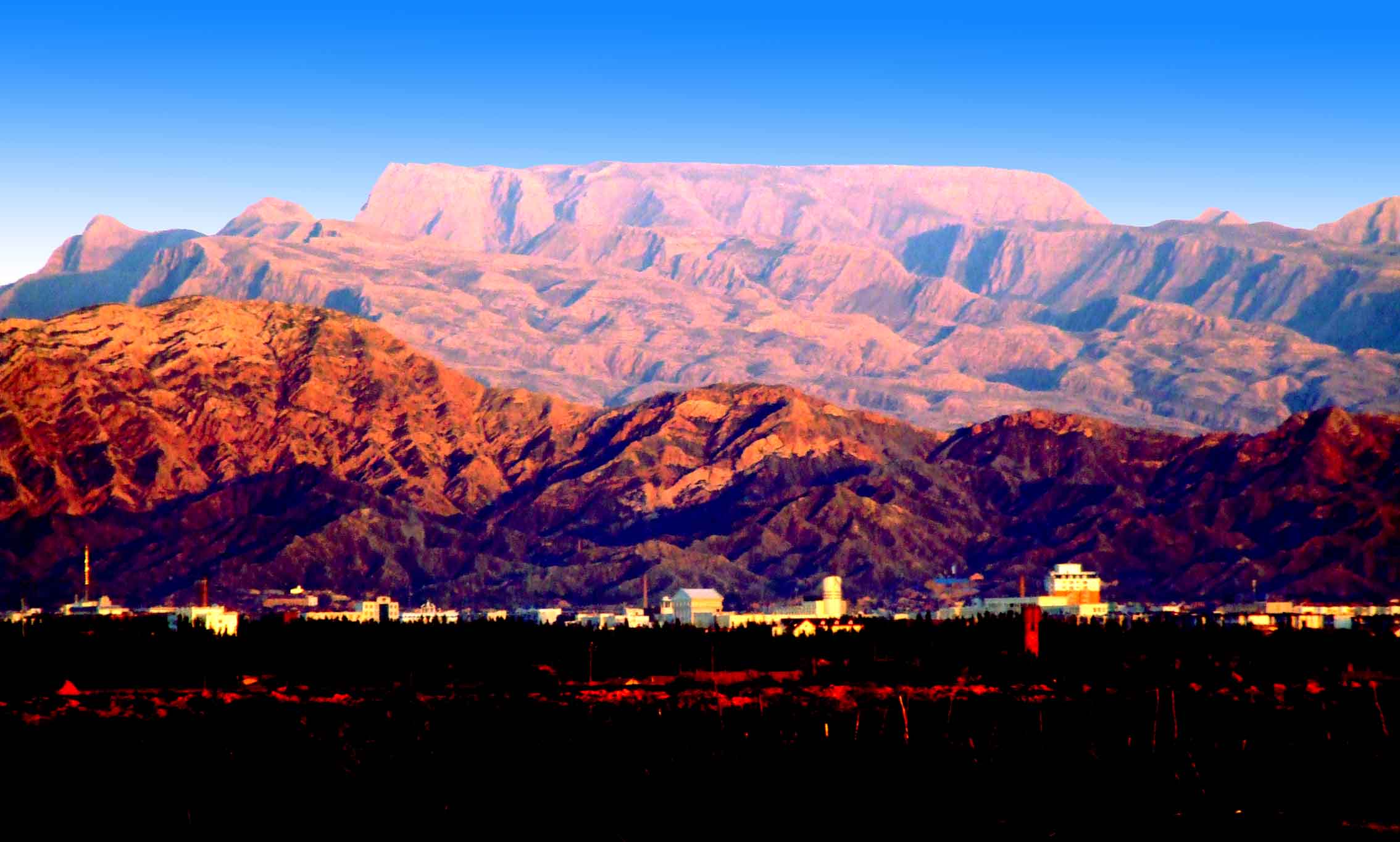 桌子山岩画位于乌海市境内桌子山东部,因其山顶平坦,远眺貌似桌子状,故此得名。主峰海拔高度2149.4米,其山势雄伟,巍峨壮观。在桌子山脉诸多山沟的悬崖峭壁和沟畔石岩磐石上,残存着大量古代岩画,岩画学者梁振华先生将这一古代文化遗址定为“桌子山岩画”。在桌子山的崇山峻岭中,古代游牧民族羌、乌桓、鲜卑、突厥、党项、蒙古等民族都曾先后交替在这里繁衍生息,创造过灿烂的古代文化,遗留沟畔石灰岩磐石和悬崖峭壁上的古代游牧人的艺术珍品——岩画成为历史遗迹,是弥足珍贵的人文景观。