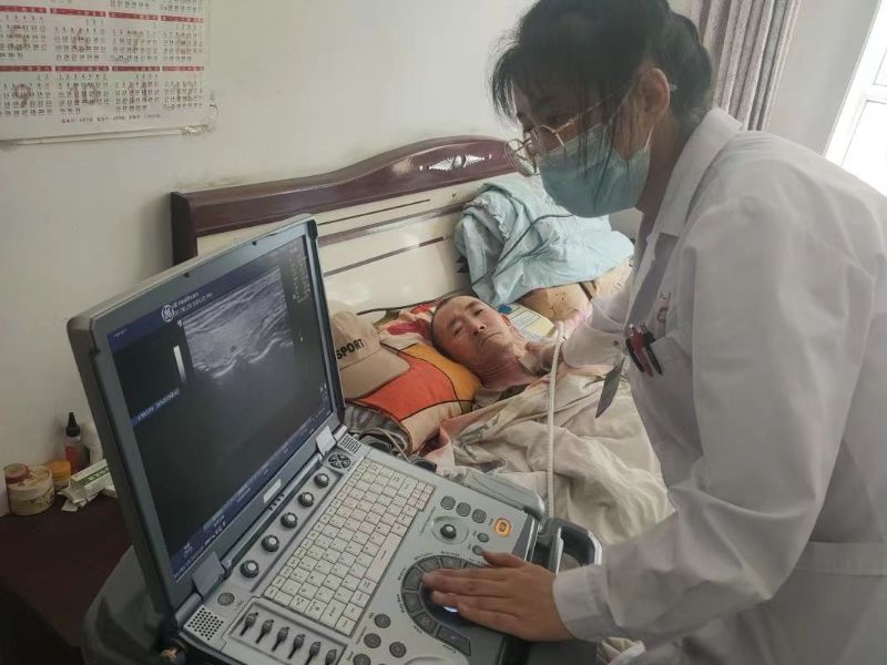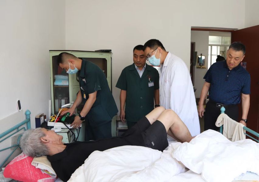 每到一户,市人民医院的医护人员都耐心细致地为退役军人进行血压测量、血糖检测、心电图、B超等项目检查,详细询问他们的身体状况、生活习惯和既往病史,针对检查结果,提供个性化治疗建议和用药指导,叮嘱他们要注意合理膳食、均衡营养、定期检查,引导他们养成健康的生活习惯。