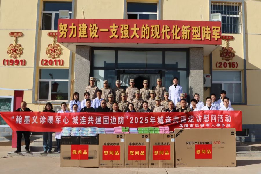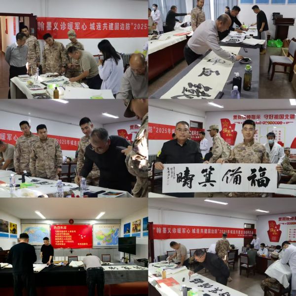 为深入贯彻习近平总书记关于军地合力强边固防重要指示批示精神,铸牢中华民族共同体意识,扎实做好全国双拥模范城与边海防基层连队结队共建,巩固发展军政军民团结。近日,乌海市组织乌海市书法家协会书法家,乌海市中医蒙医医院、海勃湾区中医医院、海勃湾区人民医院、乌海市第一口腔医院的医护人员赴城连共建某边防连队开展“翰墨义诊暖军心 城连共建固边防”2025年城连共建走访慰问活动。