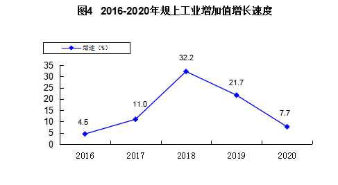 全年全部工业增加值比上年增长7.9%。其中,规模以上工业增加值增长7.7%。在规模以上工业中,国有控股企业增加值增长8.6%,非公有制企业增长7.5%,大中型企业增长11.0%。产品销售率100%,比上年提高0.2个百分点。