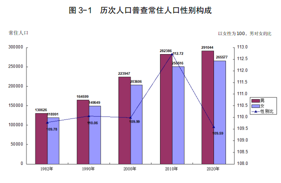 根据第七次全国人口普查结果,现将2020年11月1日零时我市常住人口性别构成情况公布如下: