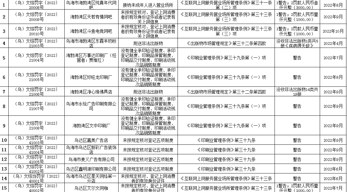 2022年第三季度执法案件信息公示表