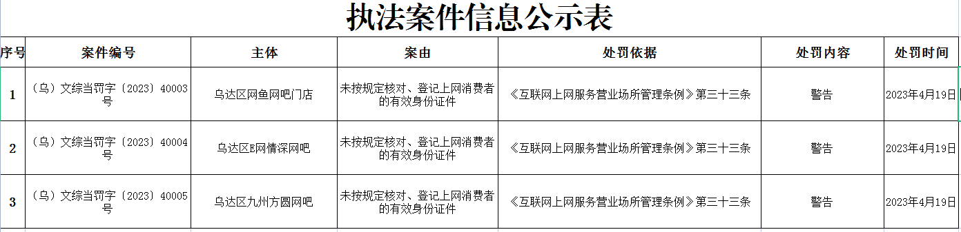 乌达区执法案件公示