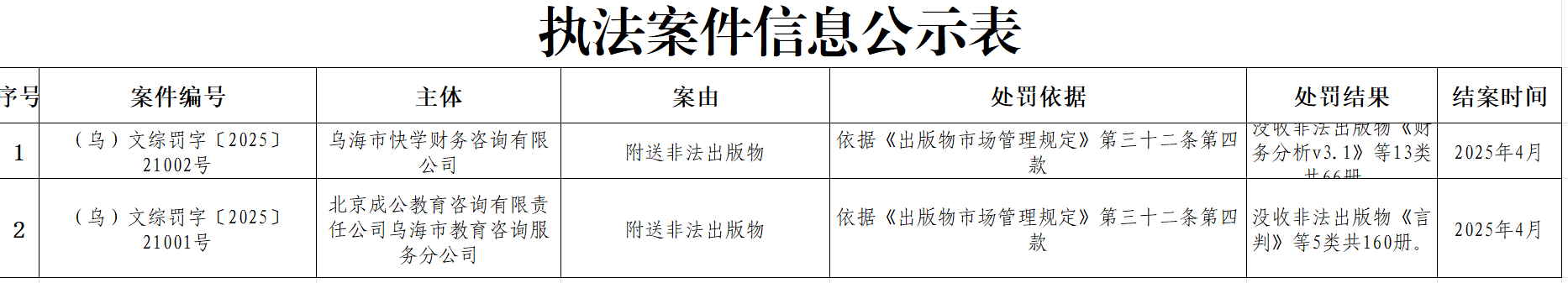 标       题 4月执法案件公示(一)
