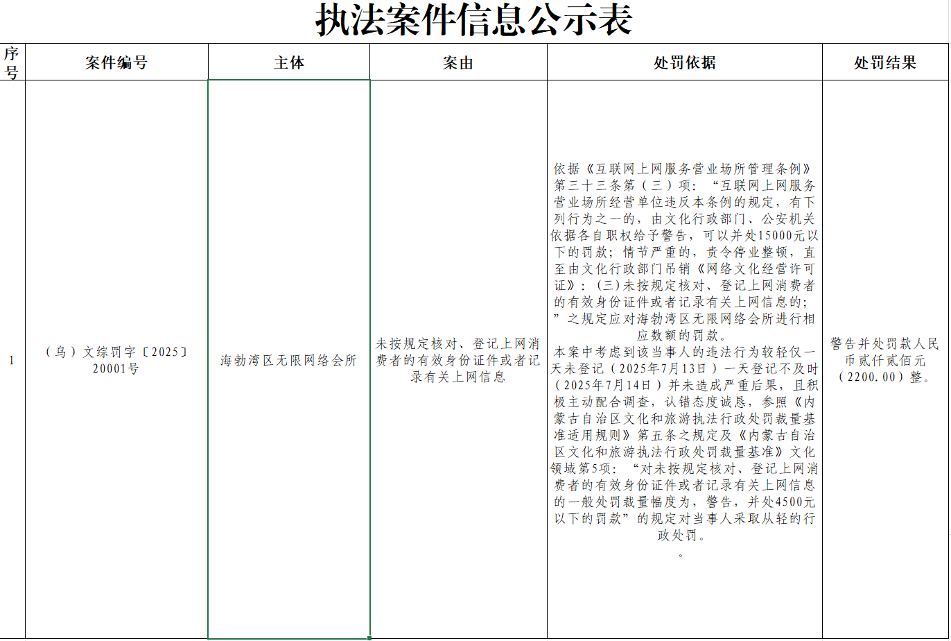 | 索 引 号 | 11150300011556741W/2025-04067 | 发文字号 | (乌)文综罚字〔2025〕20001号 | ||||||