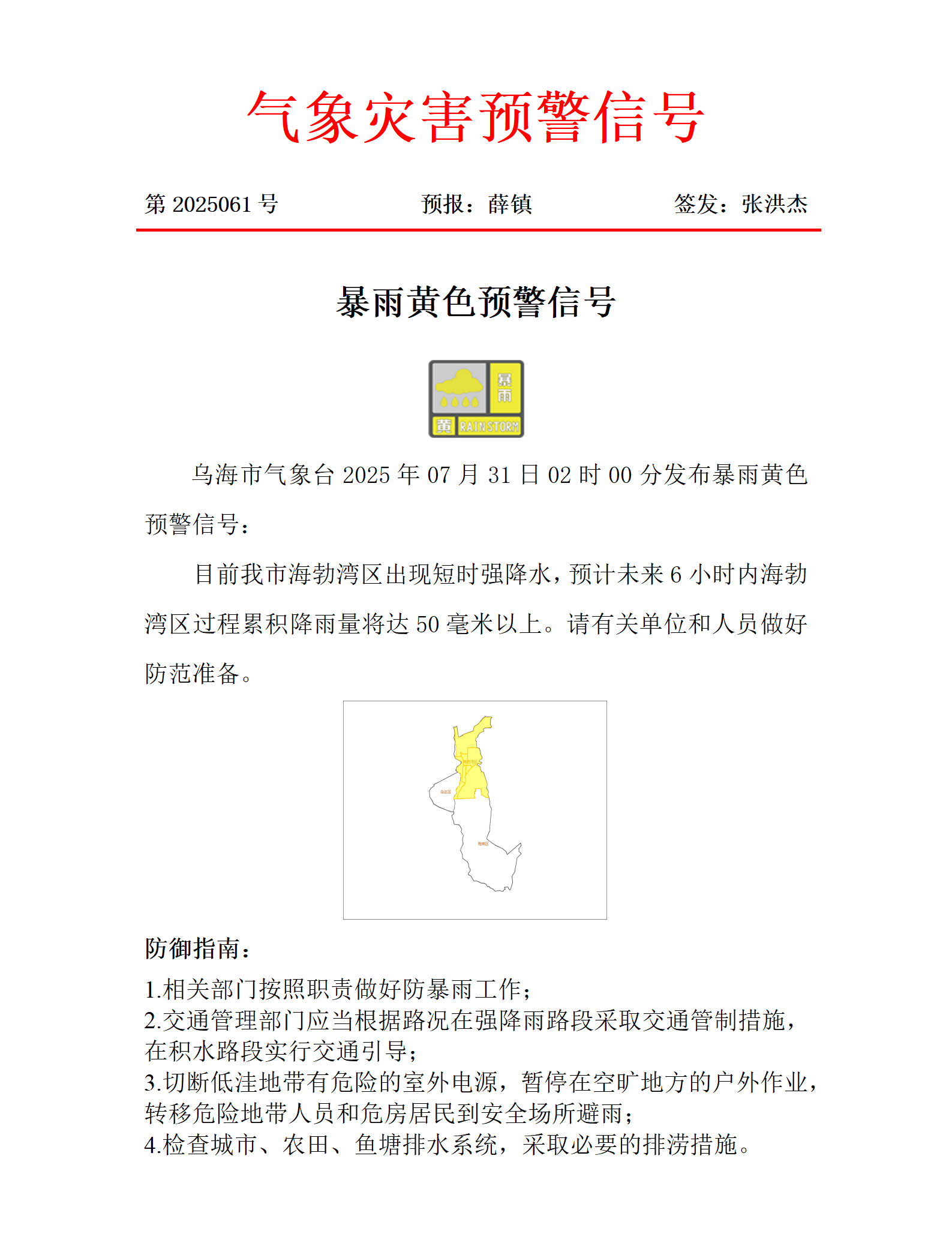 标       题 预警提示信息