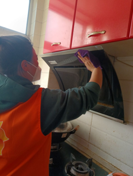 (助洁服务:帮助老人清洗油烟机)