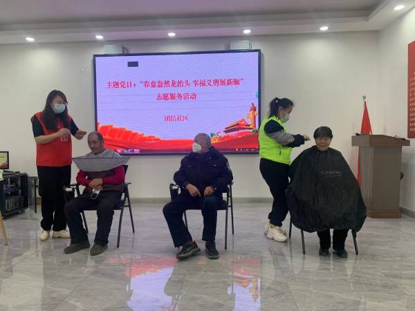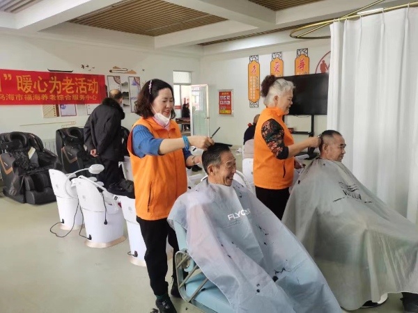 乌达区乌兰淖尔镇养老综合服务中心、巴音赛街道团结社区养老服务站组织开展“二月二”义剪为老活动。