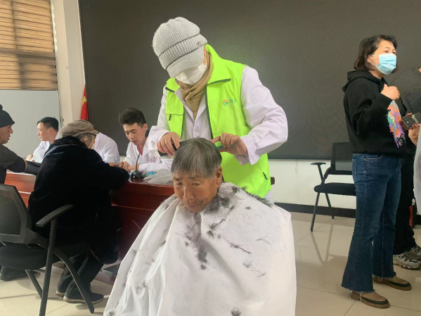 乌达区颐乐养老服务中心联合社区,在各个养老服务站举办了爱心义剪、义诊活动。