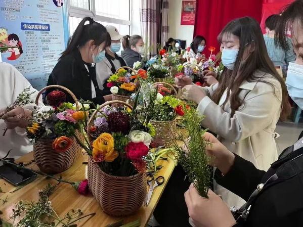 海勃湾区海北街道东山北社区举办了主题为“魅力巾帼·花漾生活”的插花主题活动。