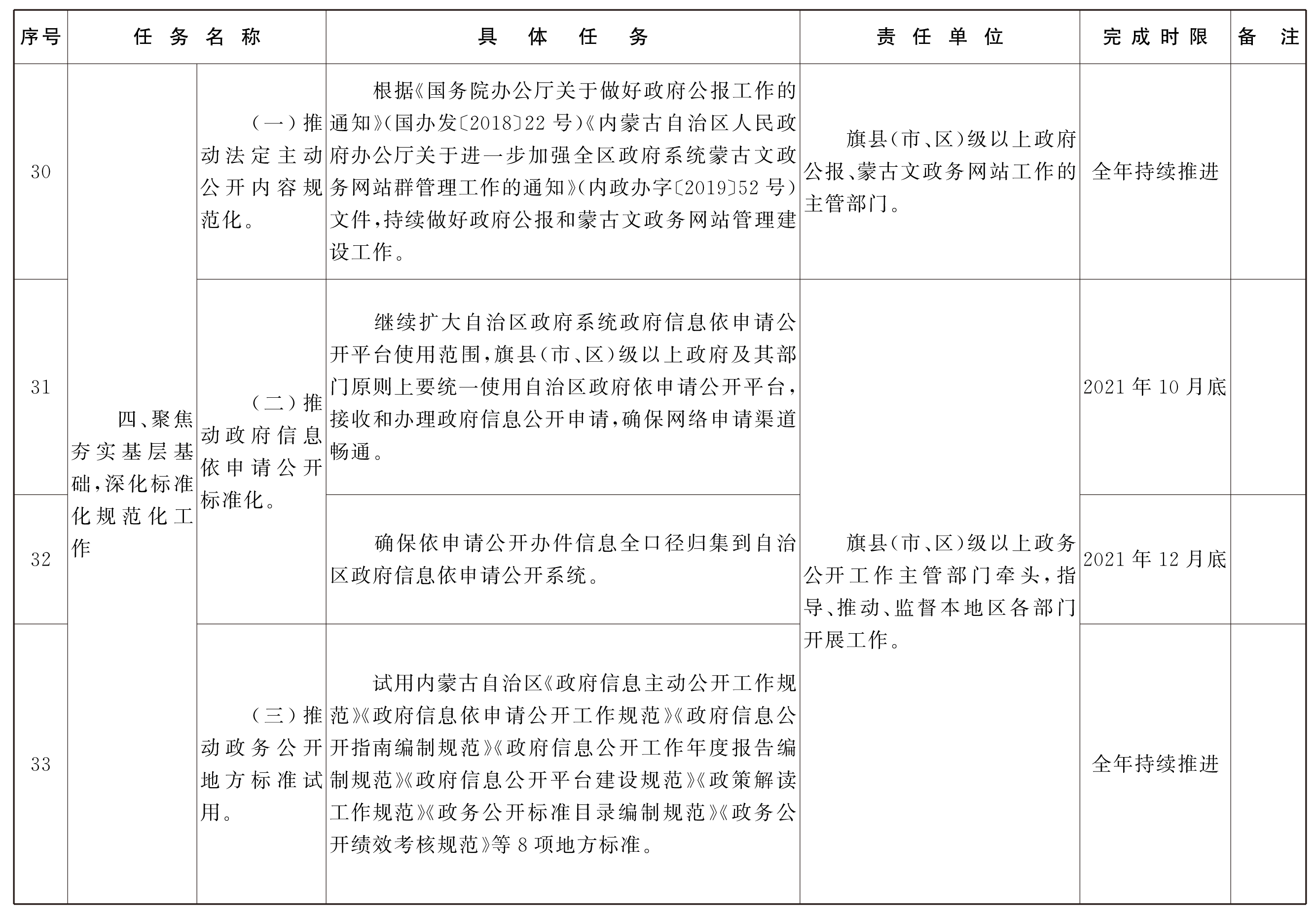 附件:内蒙古自治区2021年政务公开工作要点任务台账
